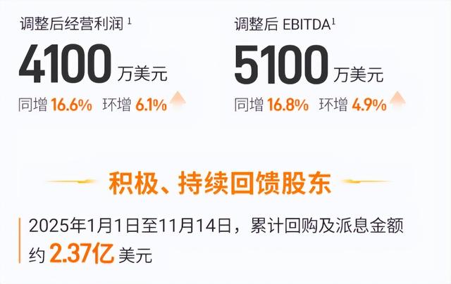 除了业务层面的稳健,欢聚的持续盈利和股东回报也进一步增强投资者的信心。第三季度,公司的经营利润达4100万美元,同比增长16.6%,经营性现金流为7300万美元。与此同时,欢聚此前宣布计划在2025到2027年派息及回购约9亿美元。今年截至11月14日,欢聚已累计派息1.48亿美元,并回购8860万美元的股票。这一政策不仅强化了投资者信心,也进一步增强了上行潜力。
