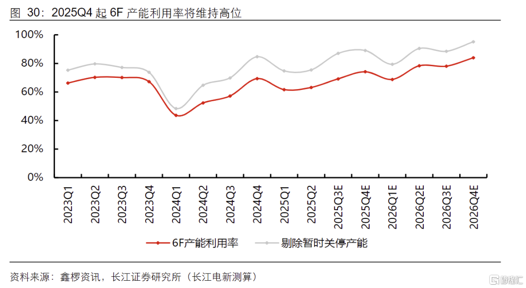 展望2026年,虽部分建成未投产产能及关停产能复产将释放一定供给弹性,但全年6F需求增量预计达8-9万吨,足以消化新增供给,且6F扩产周期长达1.5年,行业紧缺格局有望延续至2027年。