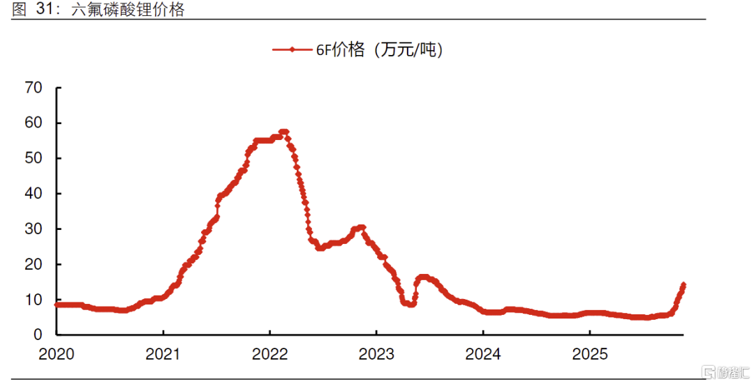 本轮6F价格大幅上涨,主要驱动因素有两点:一是年末储能、商用车需求进入旺季,实际需求表现超预期;二是前期长期低价环境下,部分高成本6F产能陆续关停或检修,进一步加剧短期供需矛盾。