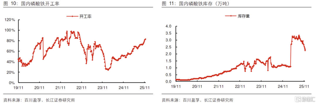 2025年以来,受益于动力与储能双赛道需求协同拉动,磷酸铁行业开工率快速回升,截至当年11月,行业开工率已升至83.4%。伴随储能需求持续释放,磷酸铁行业已突破周期底部拐点,价格进入反转上行通道。