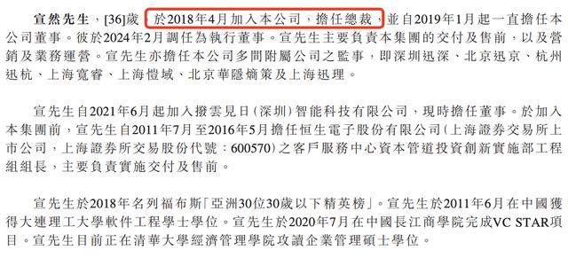 据招股书介绍,刘志坚为迅策科技董事會主席(即董事长)、执行董事兼首席執行官(CEO),耿大为为该公司执行董事兼总经理。特别说明的是,迅策科技在披露宣然的职务时存在前后矛盾之处。