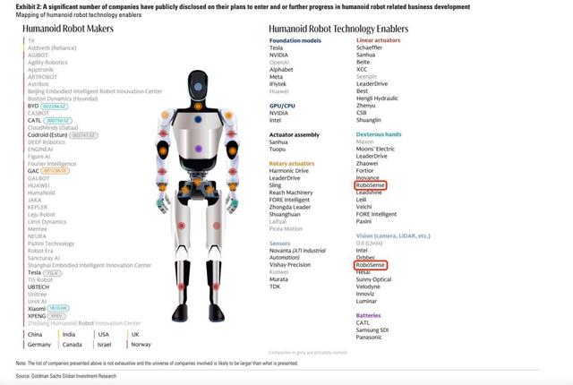 值得一提的是,基于在灵巧手、视觉两大领域的业务进展,速腾聚创日前入选了高盛集团(Goldman Sachs)发布的最新机器人行业研报《Global Automation: Humanoid Robots III: The supply chain dynamism(人形机器人系列III:核心供应链)》。