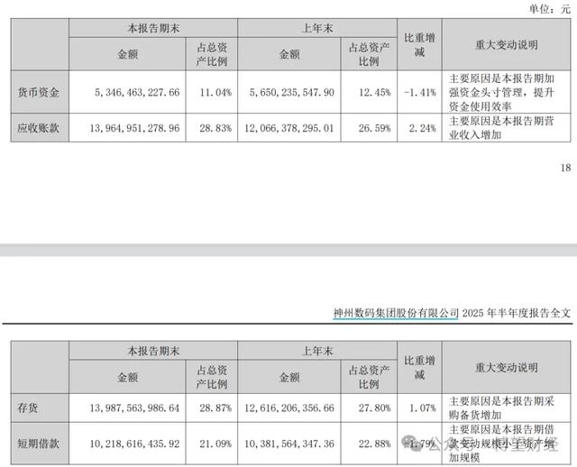 截至2025年6月末,神州数码短期借款102.19亿元,但货币资金仅53.46亿元,流动性缺口显著。
