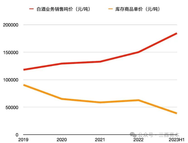 近五年来,洋河股份白酒业务销售吨价不断提升的同时,成品酒库存吨价持续下滑,侧面说明渠道迈向高端化的同时,并未导致库存同步“高端化”的趋势,在目前已上市的20家白酒企业中尚属少数。