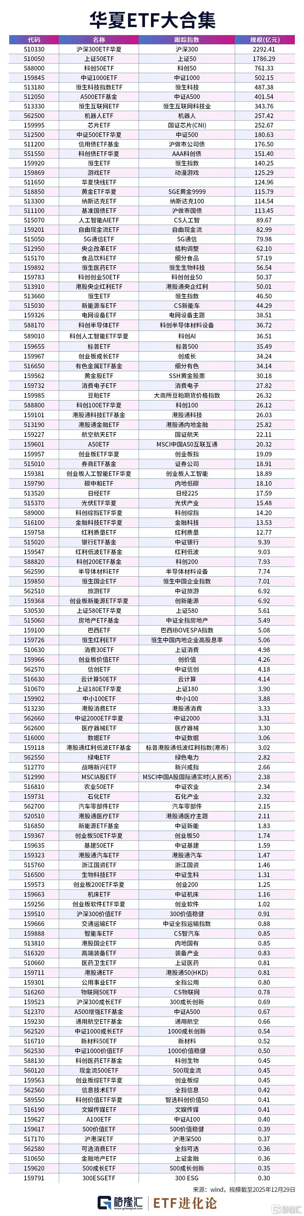 以下为华夏ETF大合集: