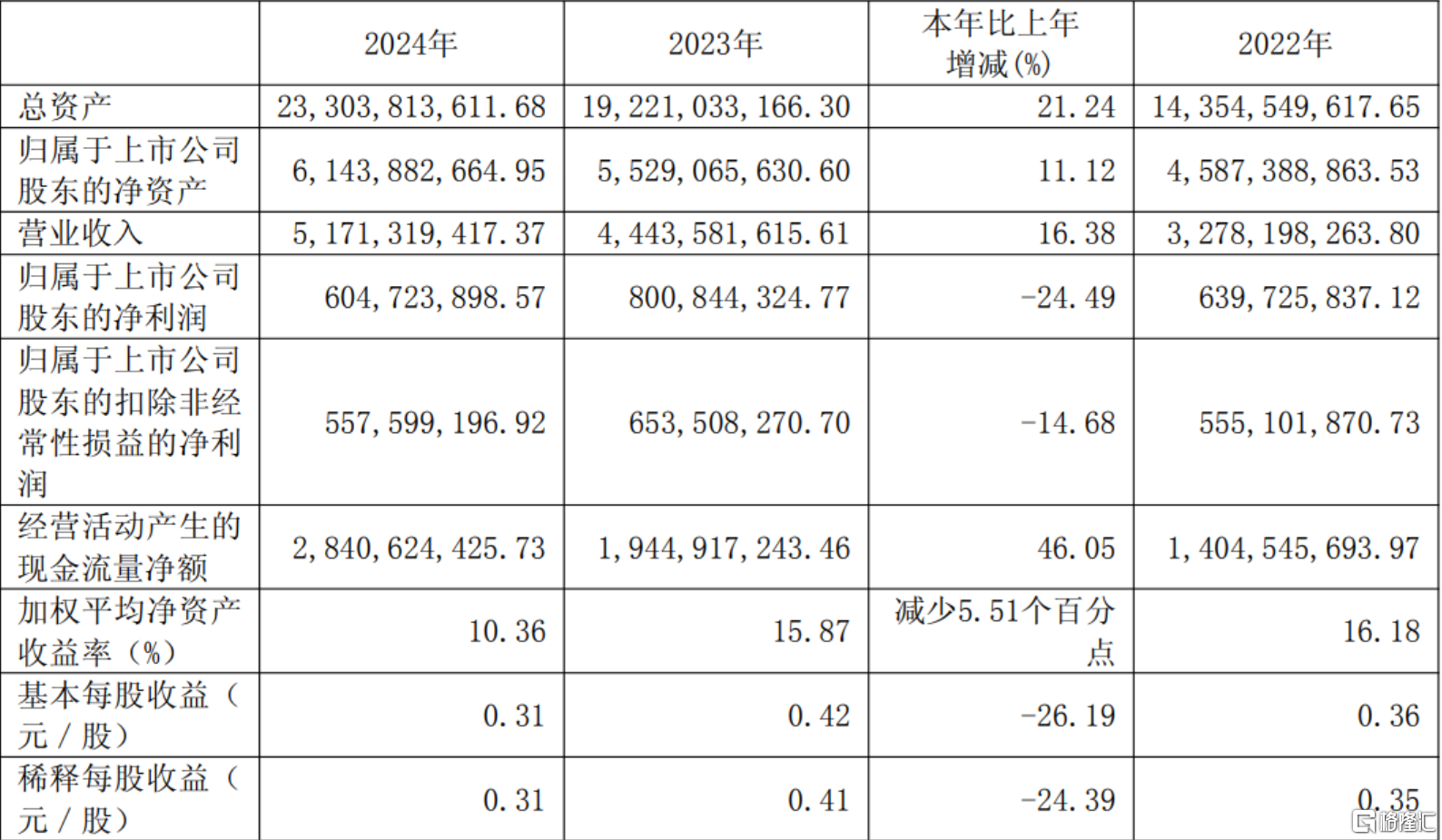 同期净利润分别为6.40亿元、8.01亿元和6.05亿元,在2024年出现显著下滑,同比下降24.49%。