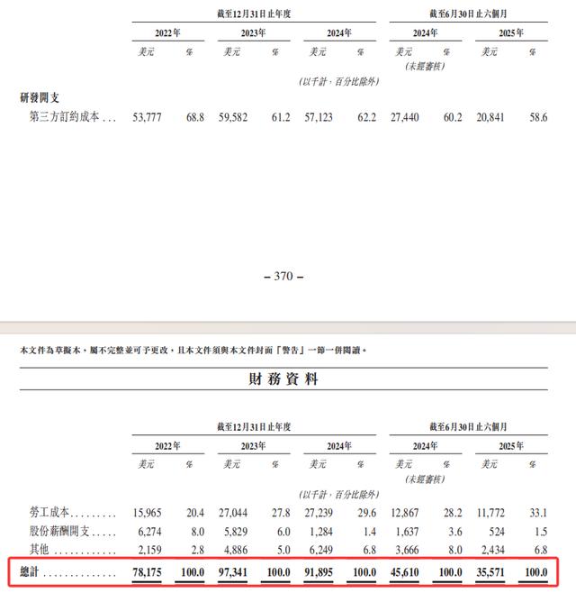 为支撑多线布局,英矽智能组建了247人的研发团队,硕士和博士学历占比超过85%,其中110人专注AI药物发现,137人专注管线开发。不过,持续的研发投入也让公司面临巨大压力。2022 - 2024年,研发开支分别为7817.5万美元、9734.1万美元、9189.5万美元,第三方订约成本占比超60%,研发人员工资支出占比低于30%。