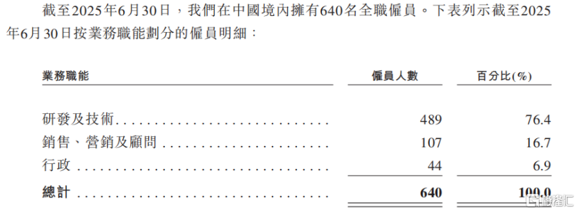 研发方面,截至2025年6月末,海致科技在中国境内拥有640名员工,其中研发及技术团队有489名成员,占比76.4%。