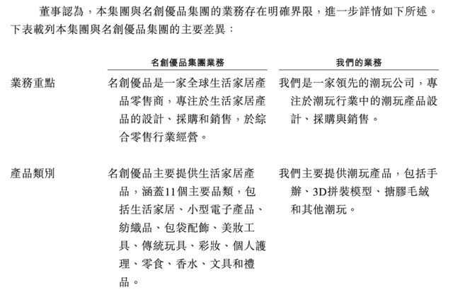 TOP TOY虽然在招股书中表示,公司与名创优品有明确的业务划分,但看上去二者更像是包含与被包含的关系,毕竟名创优品卖的产品里,本身就有一部分是潮玩。