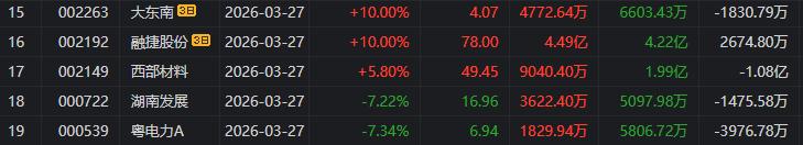东方新能:今日涨停,全天换手率13.08%,成交额20.28亿元,振幅18.15%。深股通净买入5180.21万元,营业部席位合计净买入4.40亿元。