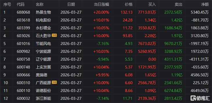 在龙虎榜中,涉及沪股通专用席位的个股有9只,热景生物的沪股通专用席位净买入额最大,净买入5340.45万元。