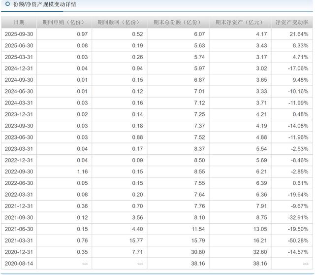 基金业绩下降,基金规模也出现骤降。长城健康生活混合A成立之初规模达38.16亿元,但成立后不久,于2020年4季度被赎回7.71亿份,2021年1季度被赎回15.77亿份,2021年2季度被赎回4.40亿份,之后仍有份额被赎回。截至2025年9月30日,长城健康生活混合A,期末净资产4.17亿元,比上期增加21.64%。