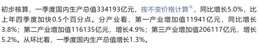 中国经济增长韧性凸显。一季度GDP同比增长5.0%,较去年四季度提升0.5个百分点,扭转了此前连续放缓的态势。分项数据显示,经济主要受两大动力支撑:一是外需保持韧性,带动出口实现14.7%的超强开局;二是政策靠前发力,推动投资增速由负转正(-3.80%➡️1.70%)。