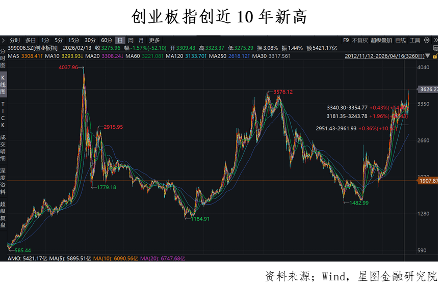 板块层面,市场高度聚焦绩优方向,财报对相关板块的提振作用十分明显。今日,锂矿、稀有金属、盐湖提锂、小金属、磷酸铁锂电池等板块强势上涨,关键催化剂来自昨晚宁德时代披露的一季报。财报显示,2026年第一季度,宁德时代实现营业收入1291.31亿元,同比增长52.45%;归母净利润为207.38亿元,同比增长48.52%。宁德时代盘中连续反超中国石油、工商银行跃居A股总市值第二。这是A股历史上首次有科技公司市值站上2万亿元。