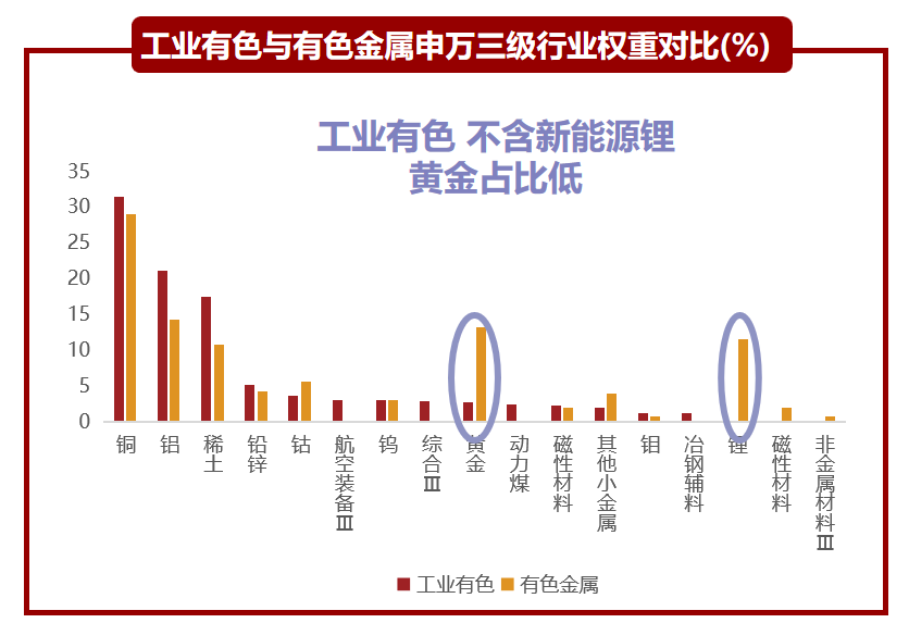 工业有色ETF(560860)的前三大金属行业为铜(29.2%)、铝(26.7%)、稀土(15.3%),合计占比近70%。相较有色金属指数,其黄金占比更低(6.0%),并剔除了能源金属锂,制造业态属性更纯。