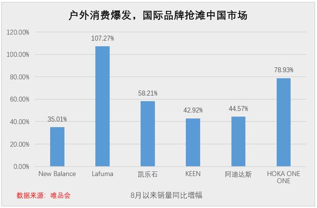 像特卖电商唯品会就是一个典型,主打一个“品牌+折扣”模式,成为不少年轻人追求性价比的重要渠道。平台数据显示,8 月以来,平台户外品类销量显著增长,Lafuma 同比激增 107.27%,HOKA ONE ONE 增长 78.93%,凯乐石、KEEN、阿迪达斯等品牌也分别实现 58.21%、42.92%、44.57% 的同比增长。