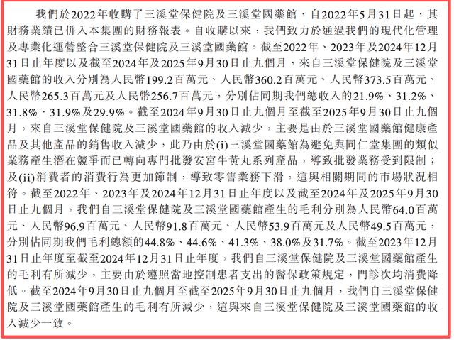 过去数年,同仁堂医养并购了多家机构,包括2022年收购的三溪堂保健院、三溪堂国药馆等。报告期内,来自这两家机构的收入分别约为1.99亿元、3.60亿元、3.74亿元和2.57亿元,占比分别为21.9%、31.2%、31.8%和29.9%。