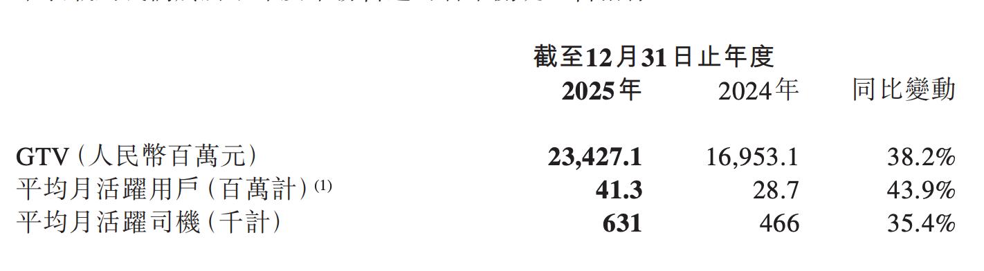 财报显示,2025年曹操出行平均月活跃用户数达4130万,同比提升43.9%;平均月活跃司机数达63.1万,同比提升35.4%。