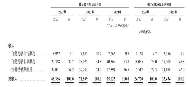 根据公司招股书,2025年上半年小马智行营收3543.4万美元,同比增长43.3%,净亏损9064万美元,同比扩大75%;2025Q2单季度营收2100万美元,同比增长75.9%,相比Q1单季度12%的增速大幅度增快。坦白说,对于一家尚未完全实现规模效应的公司来说,净亏损的扩大是正常现象;而毛利率的持续回升,让他们有了未来盈利的希望。