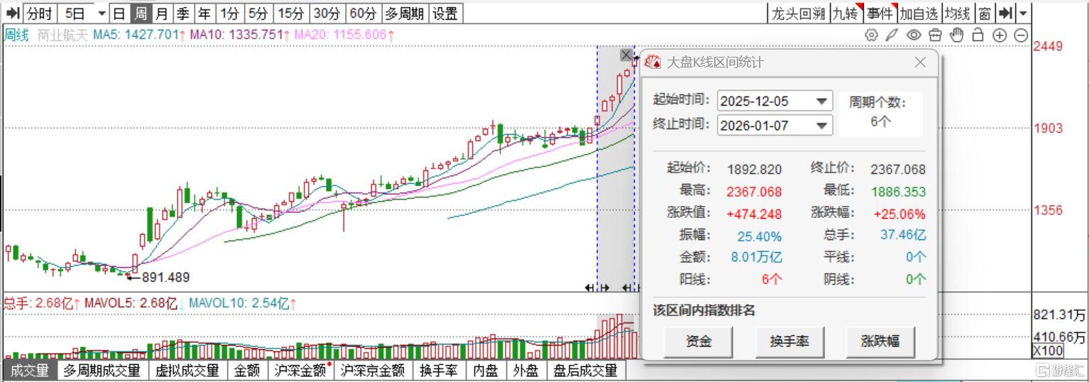 2025年12月初至今,商业航天指数更是涨超25%,航天环宇、中国卫通、中国卫星等个股实现了股价翻倍,北斗星通更是走出了六天四板的表现。