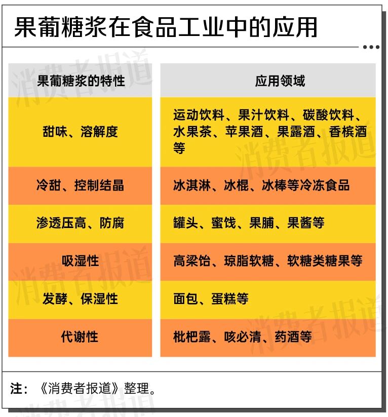 有食品行业人士对《消费者报道》指出:“目前,在国内乃至全球范围内,F55型果葡糖浆都是使用最广泛、需求量最大的型号。其甜度与蔗糖几乎一致,生产商用其替代蔗糖时,无需重新设计配方和调整风味,即可实现无缝替换。”
