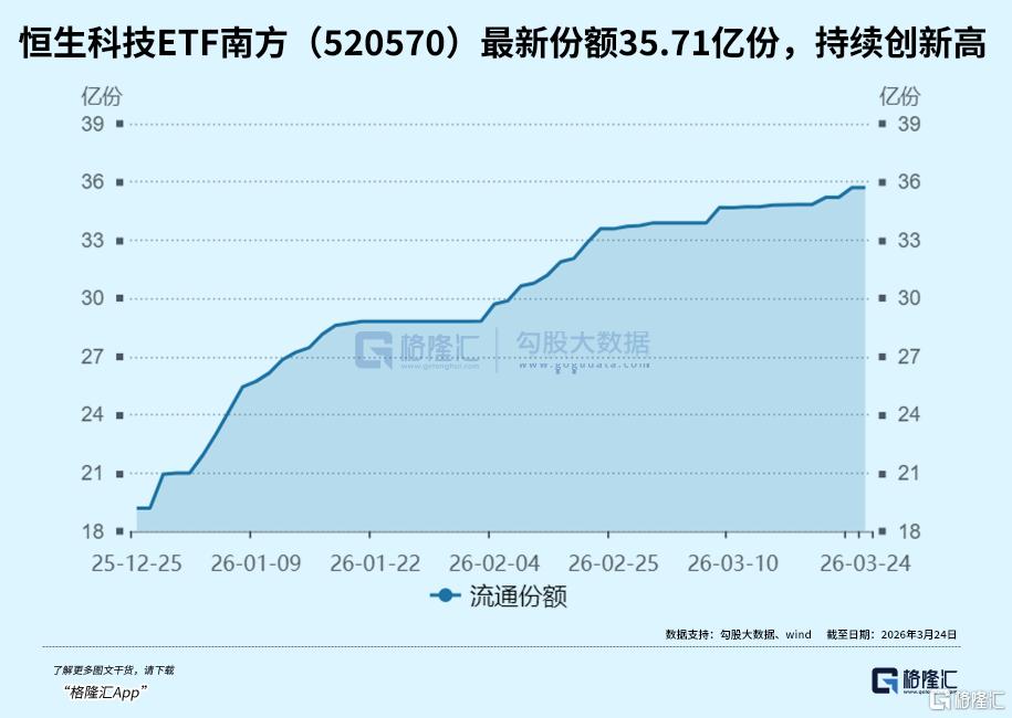 其中,恒生科技ETF南方(520570)年内资金净流入13.42亿元,最新份额35.71亿份,持续创新高。