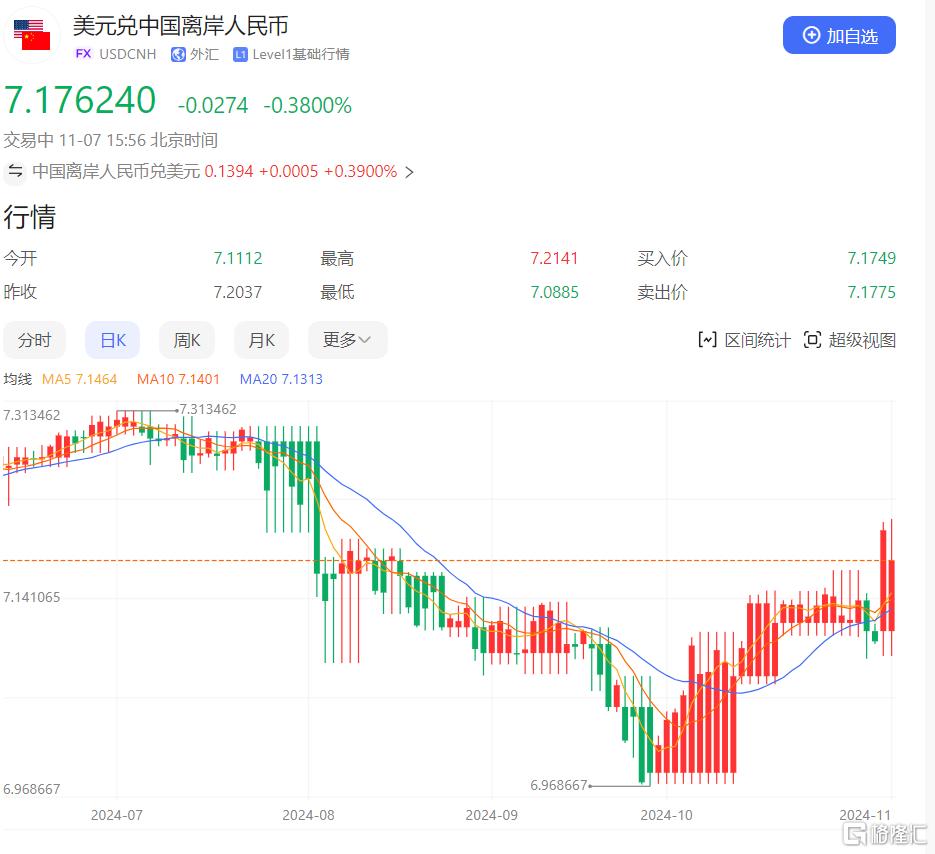 作为经济风向的重要指标,11月4日,离岸人民币汇率在短时间内飙升近500点,突破7.10大关,而今天(11月7日)又跌到了7.1729,短短3天时间,可以看到离岸人民币汇率的波动有多么明显。