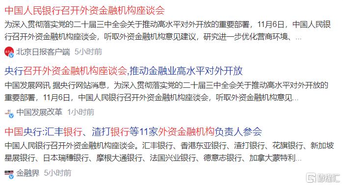 同时,我们的央行也召开外资金融机构座谈会,听取外资金融机构意见建议,研究进一步优化营商环境、推动金融业高水平对外开放有关工作。