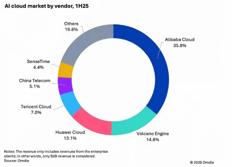 目前,在中国AI云市场中,阿里云以35.8%的占比位列第一;火山引擎以14.8%的占比位列第二。Token争夺战一触即发。