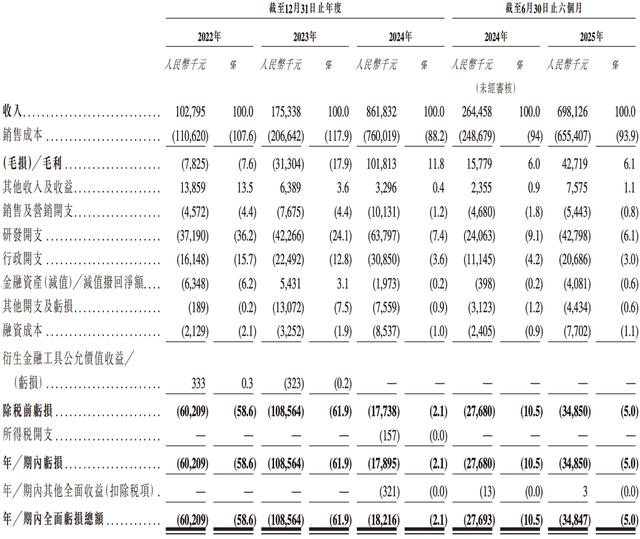 业绩方面,2022年、2023年、2024年度和2025年上半年,海光芯创的收入分别约为1.03亿元、1.75亿元、8.62亿元和6.98亿元,净亏损分别约为6020.9万元、1.09亿元、1821.6万元和3484.7万元。