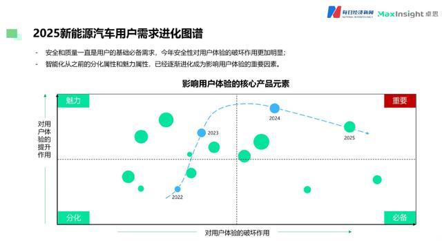 随着智能化技术的成熟,用户对新能源汽车的期待已步入“品质追求”阶段。《2025中国新能源汽车用户需求趋势研究》清晰地指出,智能化是吸引传统燃油车用户转向新能源汽车的重要原因,也是未来3至5年内行业不变的竞争高地。