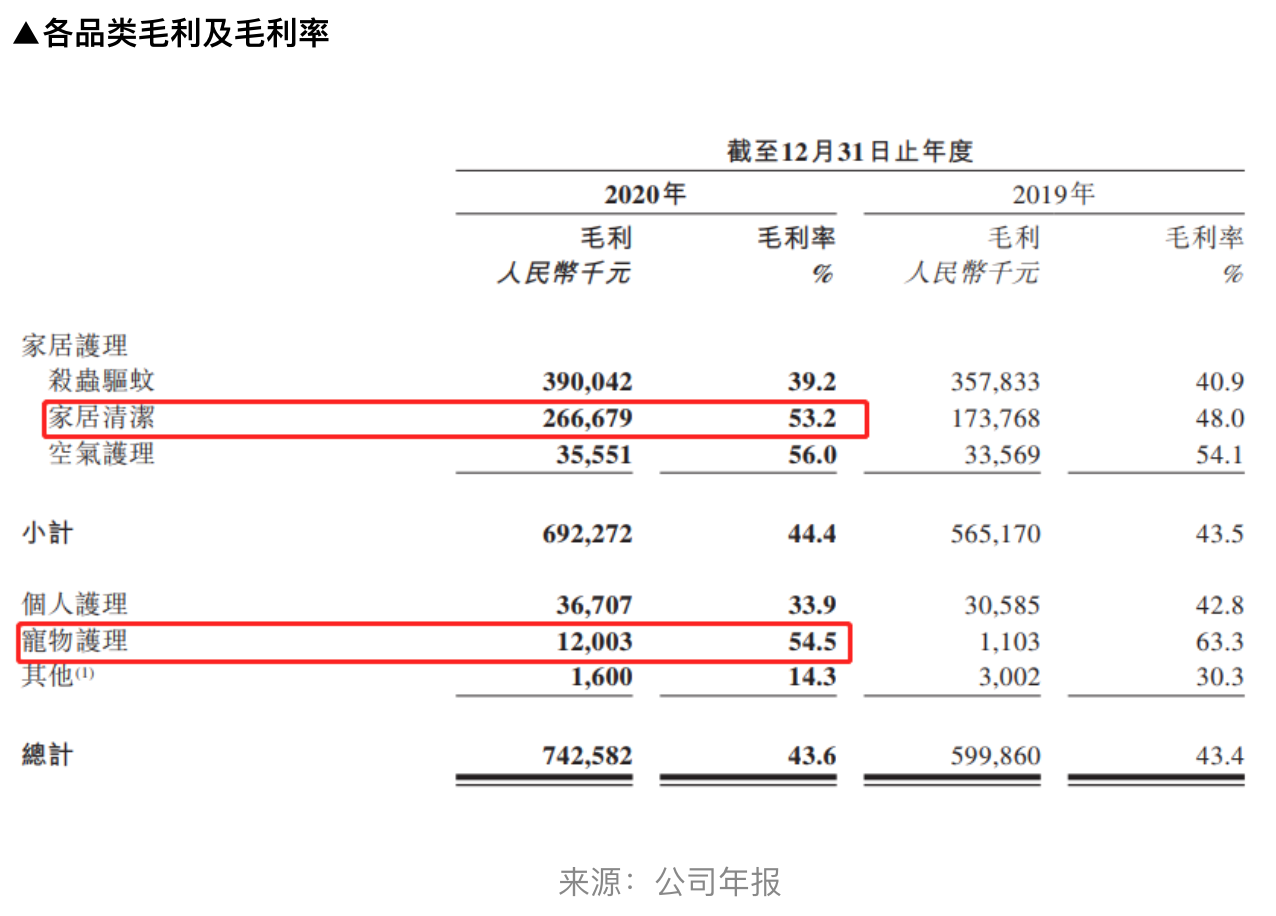 此外,在该公司的所有产品品类中,家居清洁及宠物护理业务的毛利率最高,分别为53.2%及54.5%。由于这两项高毛利业务的快速增长,带动了公司整体毛利率的提升。