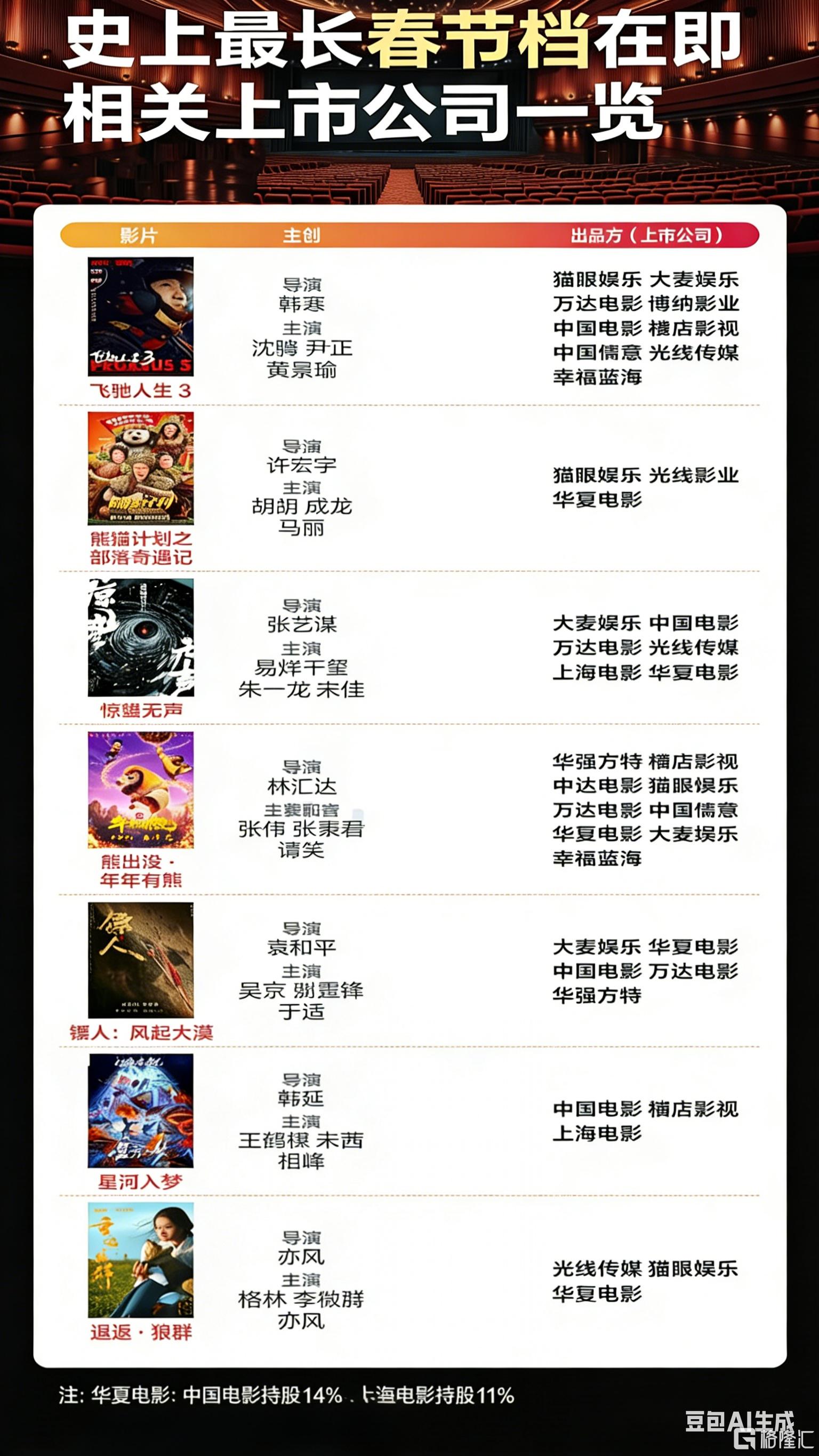 公开信息显示,春节定档影片中,多家上市公司参投。