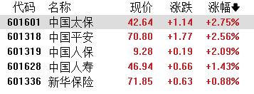 保险股强势,中国太保、中国平安、中国人保涨超2%,中国人寿、新华保险等跟涨。