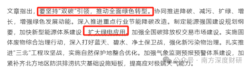2026年2月15日,习近平主席在当前经济工作重点任务中再次强调:要坚持“双碳”引领,推动全面绿色转型,加快新型能源体系建设,扩大绿电应用。