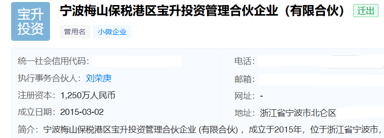 天眼查显示,泰安宝升成立于2015年3月2日,注册资本1250万元,执行事务合伙人是刘荣庚,公司的曾用名为“宁波梅山保税港区宝升投资管理合伙企业(有限合伙)”(以下简称“宁波梅山宝升”),目前仅对外投资熊猫乳品一家企业。