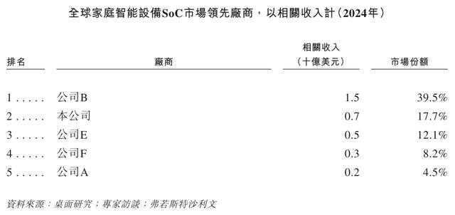 根据弗若斯特沙利文报告,按照2024年的相关收入计算,晶晨股份在家庭智能终端SoC芯片领域位列中国大陆第一、全球第二,全球市场占有率约为17.7%;在专注于智能终端SoC芯片的厂商中位列全球第四。