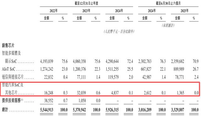 但就目前的产品结构来看,晶晨股份的智能汽车SoC及其他芯片业务对收入贡献非常有限,报告期各期,该板块分别实现收入1624.8万元、3203.9万元、483.7万元和136.5万元,在总收入中的占比不到1%。