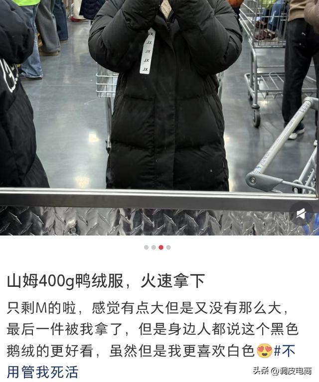所以你会看到,今年卖得好的羽绒服,大多有一个共同点——参数很实在。不管是山姆那种大充绒的基础款,还是一些主打功能性的品牌款,都靠真的暖被推上了热榜。尤其是山姆,一款羽绒服充绒达到了惊人的400克,瞬间被抢空。