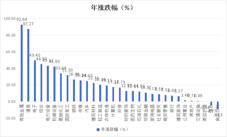 从申万一级行业来看,有色金属、通信、电子三大行业领涨,充分彰显今年是有色+科技大年的特色,食品饮料、煤炭、美容护理三大行业还是跌的。不知道明年是强者恒强还是困境反转,亦或是涨幅中间的板块向上晋升呢?