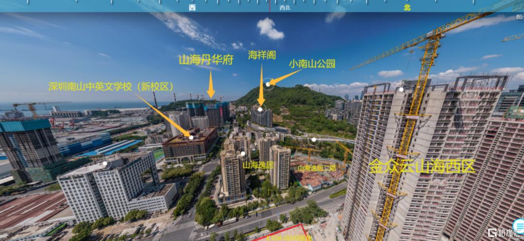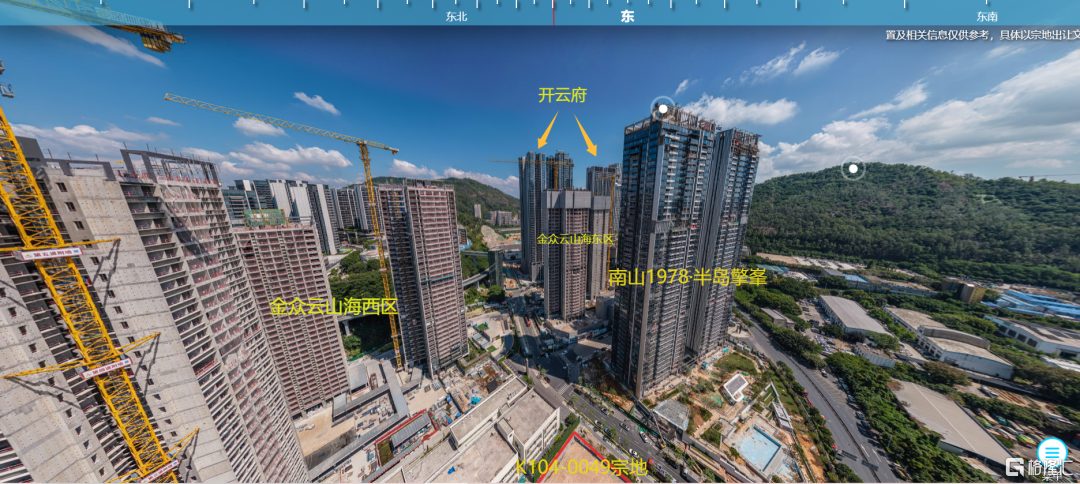 从实景的航拍视角来看,K104-0049宗地处于金众云山海西区正南向看海的视野方向,至于遮挡到什么程度,取决于宗地未来规划的楼栋布局以及建筑总高度。