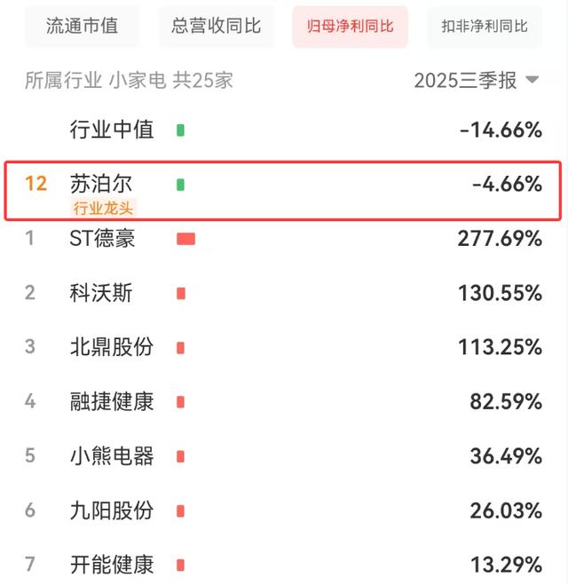 最新的财报显示,苏泊尔正陷入“增收不增利”的境地。2025年前三季度,公司实现营收168.97亿元,同比增长2.33%;净利润为13.66亿元,同比下降4.66%;扣非净利润为13.19亿元,同比下降6.06%。与同行业公司相比,苏泊尔的营收和净利润增速均处于行业于中游水平。