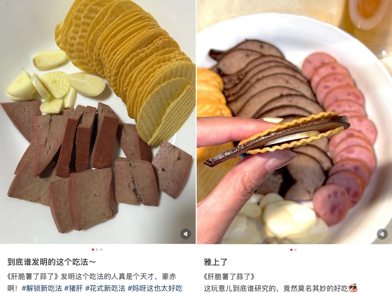 “干脆薯了蒜了”将卤制猪肝、薯片与生蒜片组合在一起,看似暗黑搭配,网友尝试后却连连表示“好吃”“上头”“绝配”,相关话题在社交平台迅速发酵。