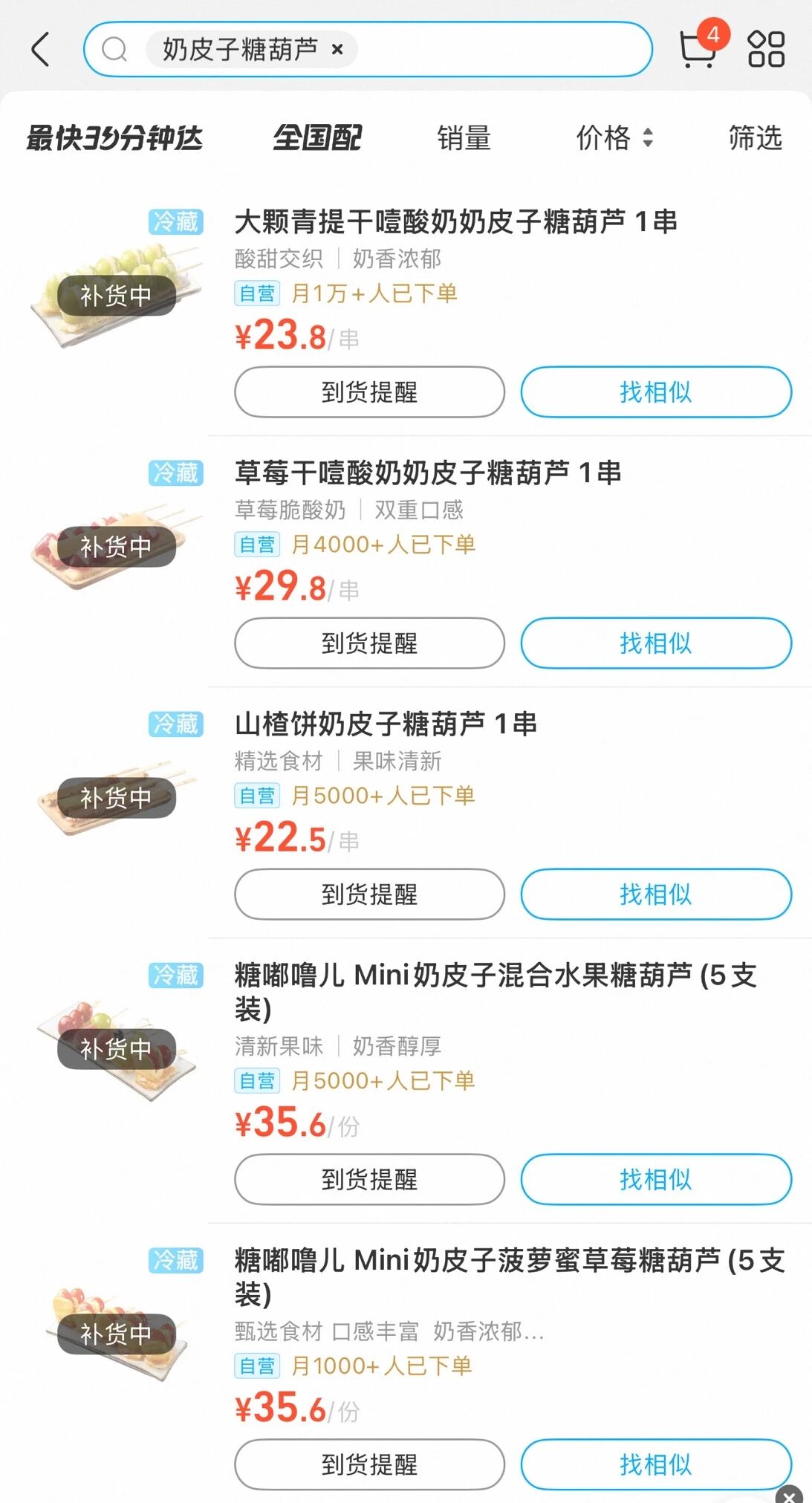 奶皮子糖葫芦处于售罄状态 图源:盒马APP