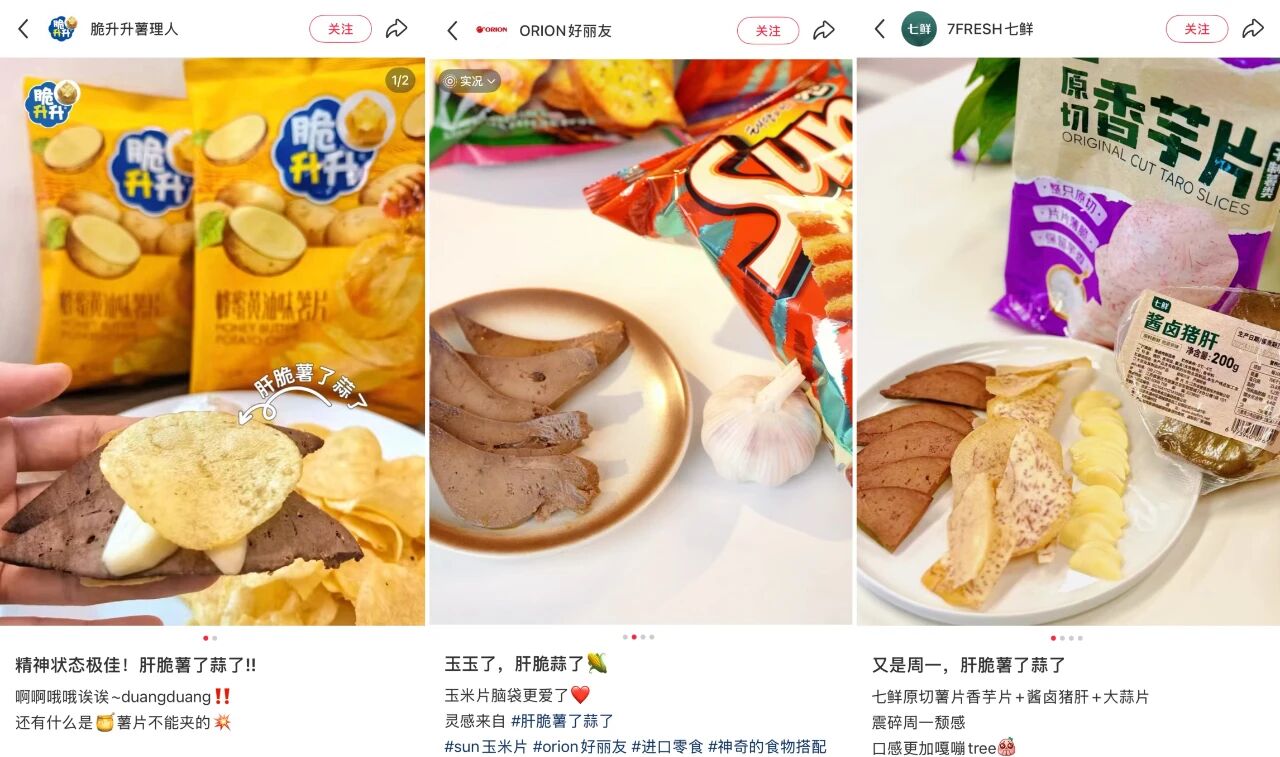 持续多年“口味之争”的薯片市场,意外被这款混搭新品打开新局面。当“肝脆薯了蒜了”成为新爆款,脆升升、好丽友、七鲜超市等企业快速响应、借势,通过官方账号玩梗互动,进一步推高产品热度。