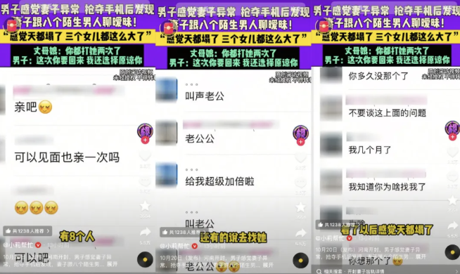 男子翻妻子手机发现和8人暧昧,却求原谅:我错了,出去打工忽略了她。