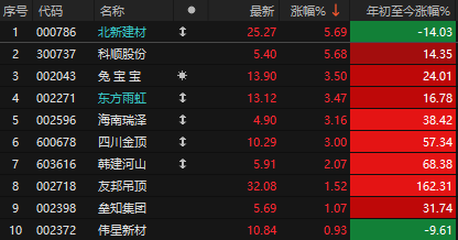 今天盘中有房地产小作文,地产链一度拉升,我爱我家盘中一度涨停,北新建材大涨5.69%,科顺股份大涨5.68%。