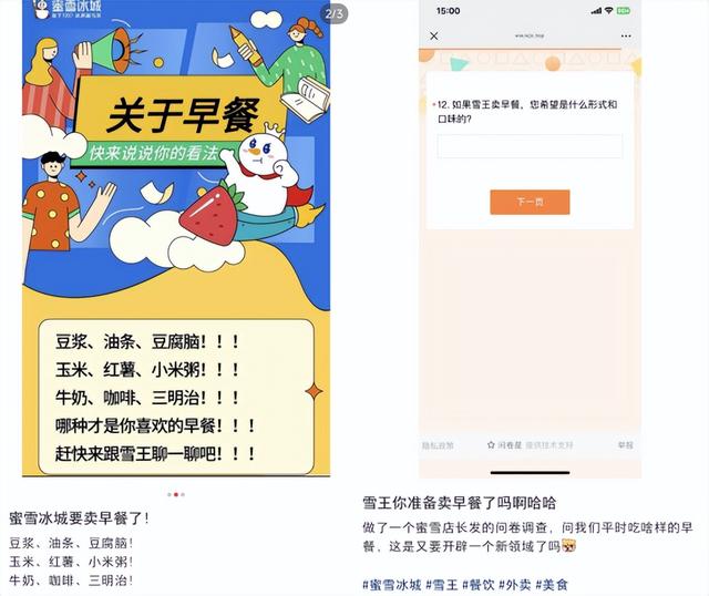 近日,一则关于蜜雪冰城向用户发送早餐调研问卷的消息在社交平台不胫而走,迅速引发网友热议。“雪王要卖早餐了?”成为许多人好奇的焦点。
