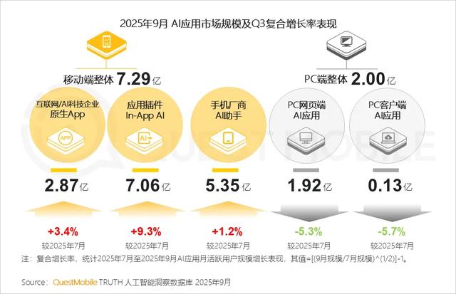 字节跳动旗下的豆包,一直保持稳步增长,到了2025年第三季度月活用户数达到1.72亿,超过DeepSeek的1.45亿;腾讯旗下的腾讯元宝,2025年上半年的月活用户数同比增长55.2%,位居AI原生应用飙升榜第二名,成为AI原生移动应用中最令人瞩目的“黑马”;阿里巴巴旗下的千问与灵光,在2025年11月双双成为现象级产品,超越ChatGPT、Sora、DeepSeek成为史上增长最快的千万级/百万级AI应用……