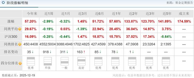 笔者还发现,该基金在2024年3季度买入16.78万股的北方华创,2024年4季度持有19.47万股。2025年1季度持有58.74万股,2025年2季度持有57.80万股,2025年3季度持有55.58万股。然而,在该基金持有期间,在2024年7月1日-2025年12月19日股票价格上涨了87%。